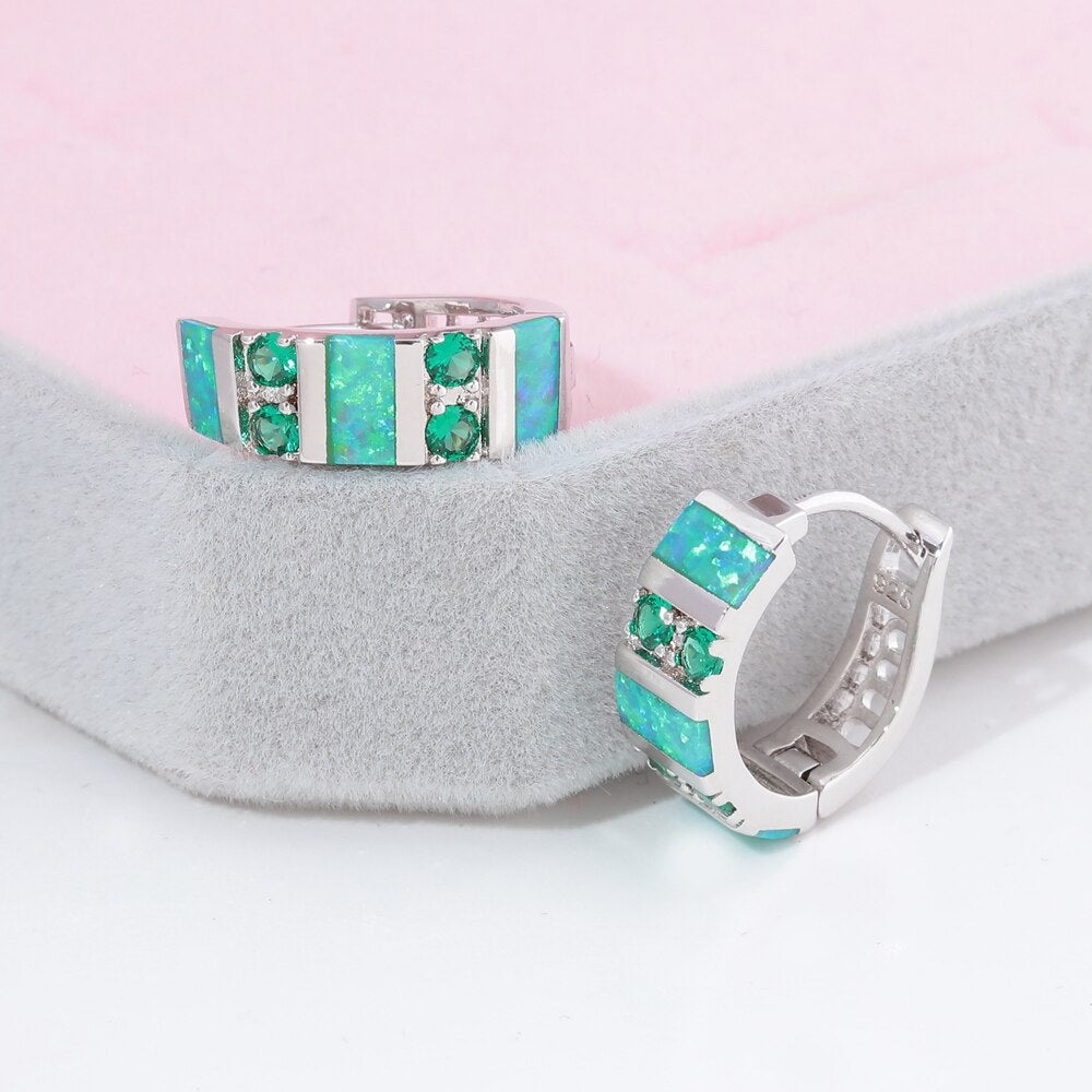 Spiritual Green Opal & Emerald Silver Earrings