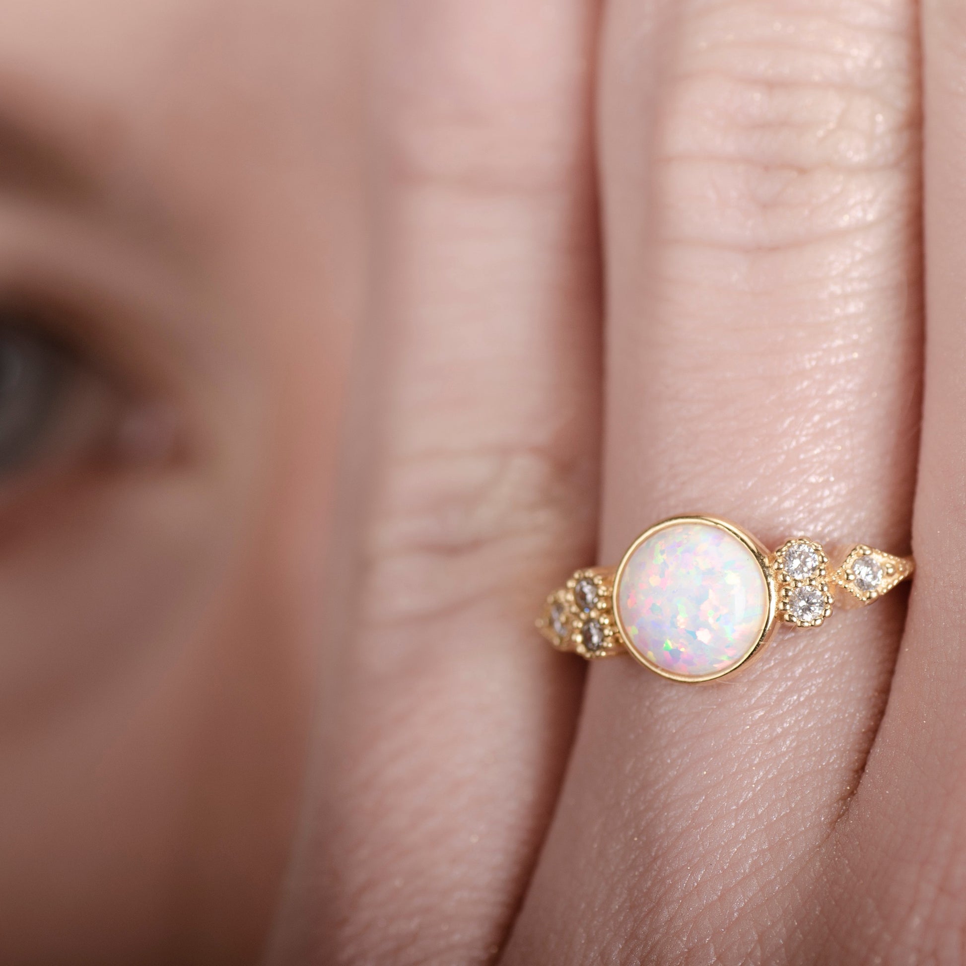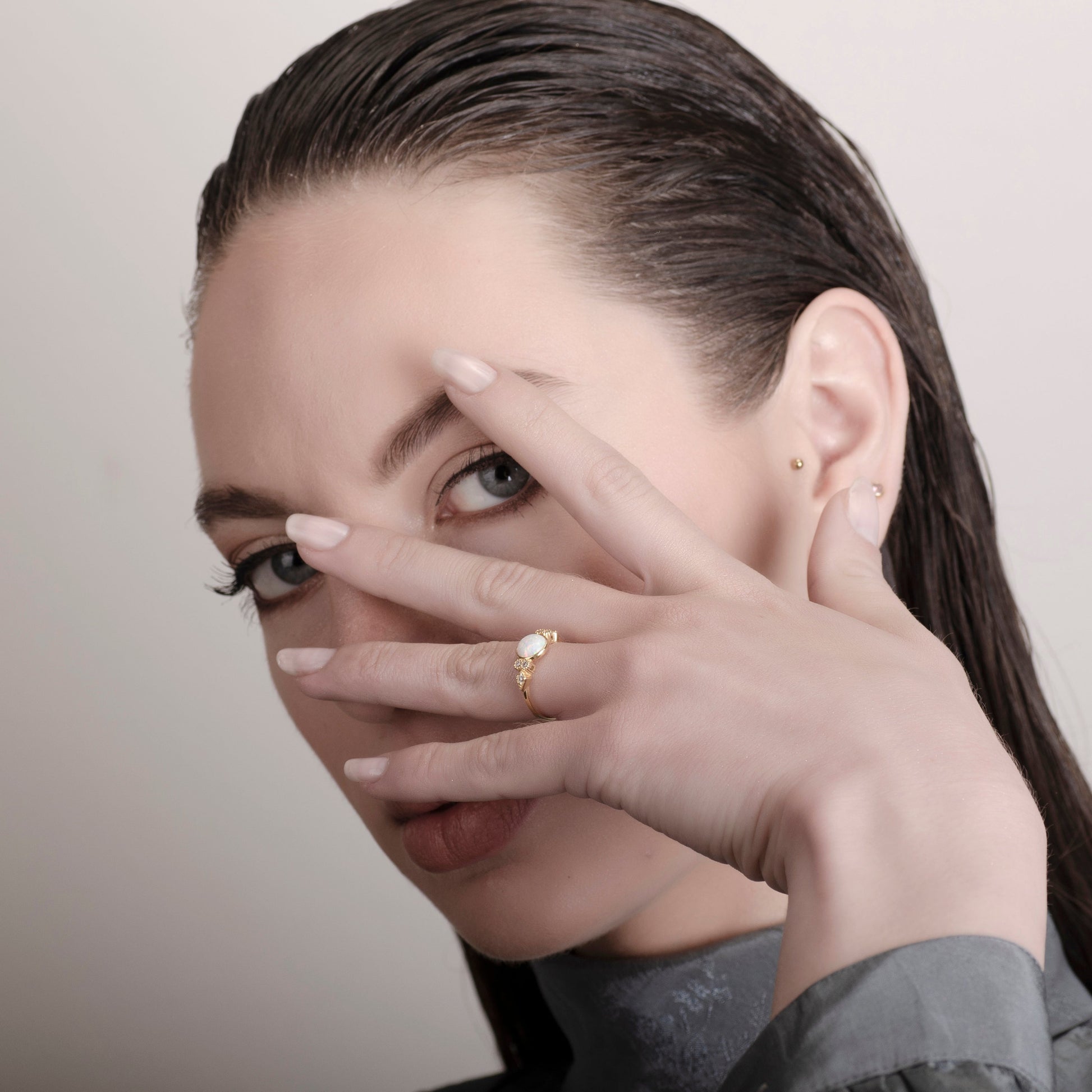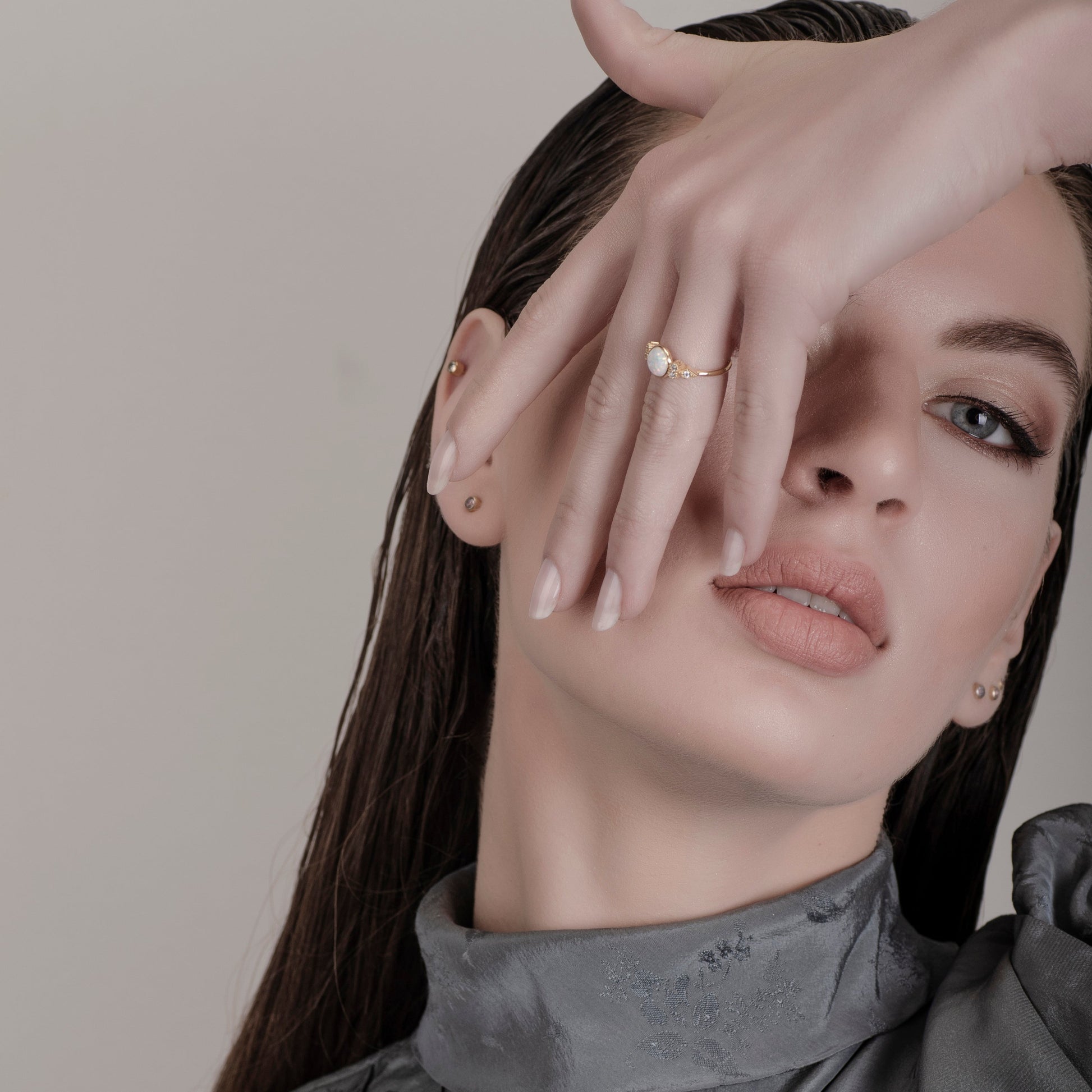 Eleanor White Opal Ring is a symbol of timeless beauty. Elegance and shining combine on this ring. It has a gorgeous white opal stone that will feel you happy. This unique design is the perfect choice for your everyday look.