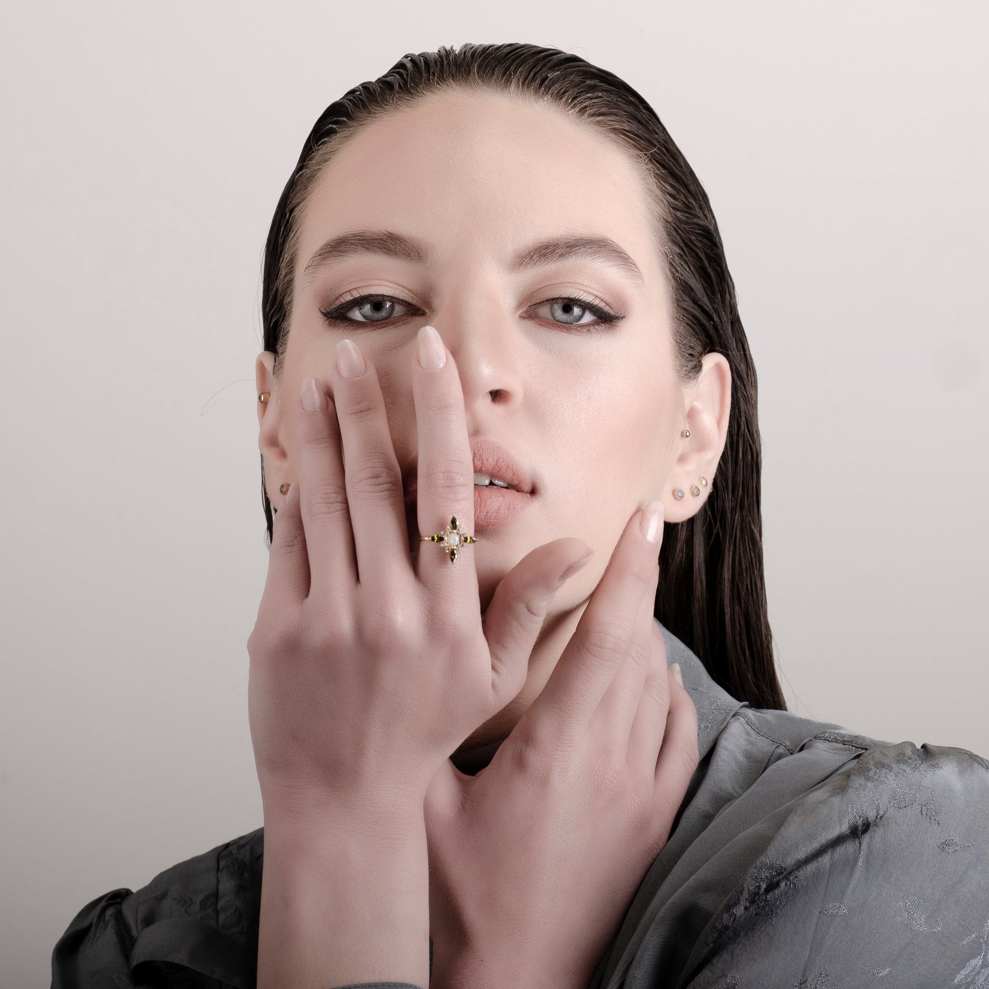 Do you know that Flora is the Roman goddess of springtime in mythology? Flowers have inspired us to design Flora Green Quartz Ring. This glowing ring represents beauty, happiness, and spring. Brings you inner peace. Finish your look with Flora Green Quartz Ring.