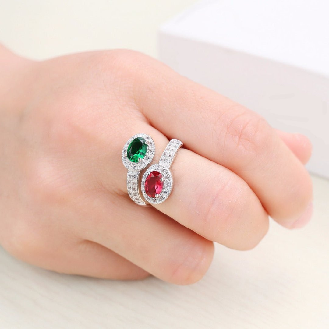 Luxury Emerald & Ruby Silver Ring