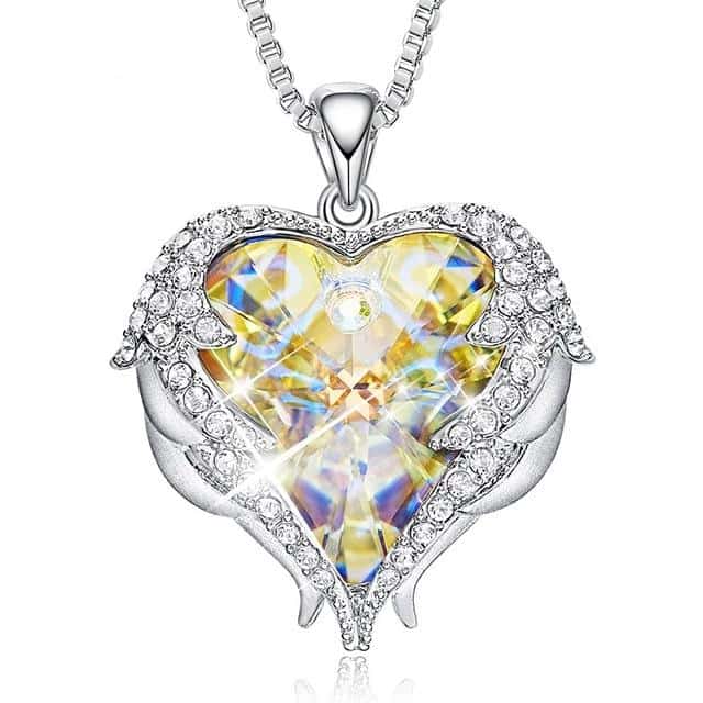 Zeigen Sie das ganze Feuer Ihrer Liebe und Leidenschaft und sehen Sie dabei elegant und stilvoll aus, indem Sie Ihren Stil mit dieser außergewöhnlichen, lebendigen, farbenfrohen, rhodinierten, silbernen Halskette mit Engelsflügeln und Kristallherz unterstreichen.